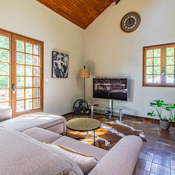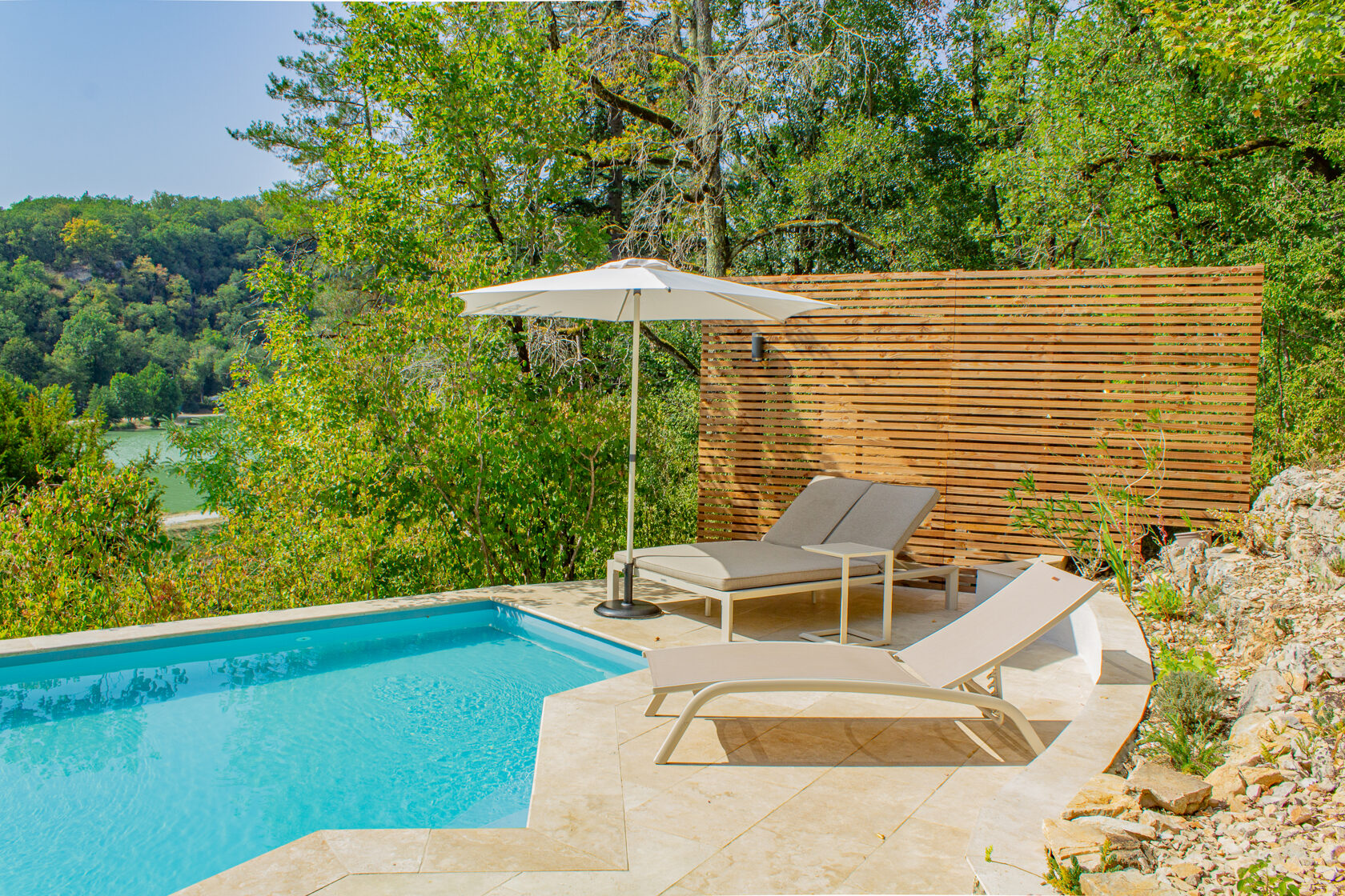 Cette propriété unique, nichée dans un bois privé de 1,6 hectare, est l'endroit idéal pour se détendre et se ressourcer. Elle est aménagée sur deux niveaux, et offre un hébergement de qualité . Au premier étage, vous trouverez une cuisine entièrement équipée, un salon/salle à manger ouvert donnant sur une grande terrasse avec vue sur le lac. Une chambre double avec un grand lit king-size (180 x 200 cm), une salle de bains et des toilettes séparés. Un escalier mène au rez-de-chaussée comprenant une chambre double avec un grand lit king-size (180 x 200 cm), une chambre avec deux lits simples et une salle d'eau. Vous profiterez également d'une piscine privée (6 m x 4,35 m) avec terrasse ensoleillée. Un barbecue, une table de ping-pong, le Wi-Fi haut débit et une enceinte Sonos dans le salon sont également à votre disposition.
